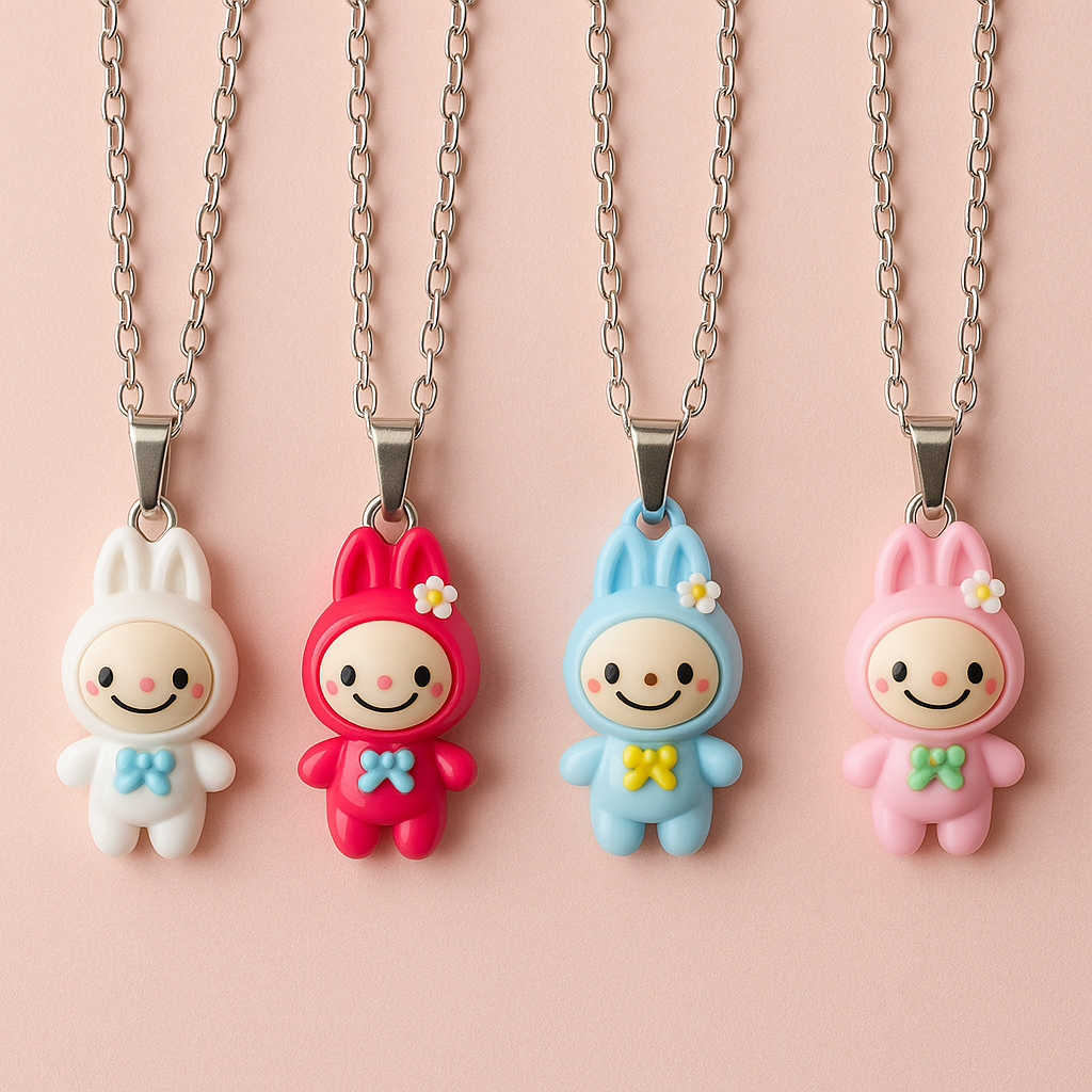 Nuestros exclusivos Collares Labubu son mucho más que un accesorio: son el detalle perfecto para expresar ternura, diversión y personalidad. Diseñados con colores vivos y figuras adorables en forma de conejitos.