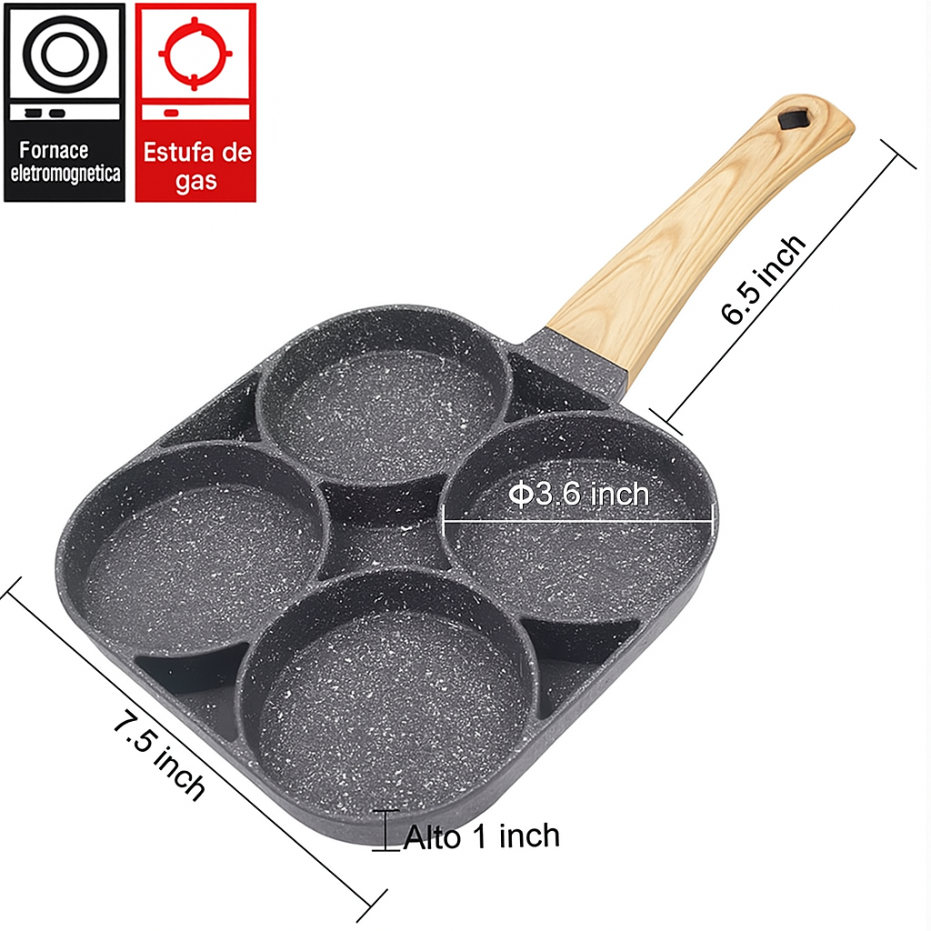 ¿Te ha pasado que al voltear una tortilla, se te desarma o termina en el suelo? Con nuestro Sartén 4 puestos antiadherente, cocinar será más fácil, rápido y divertido.