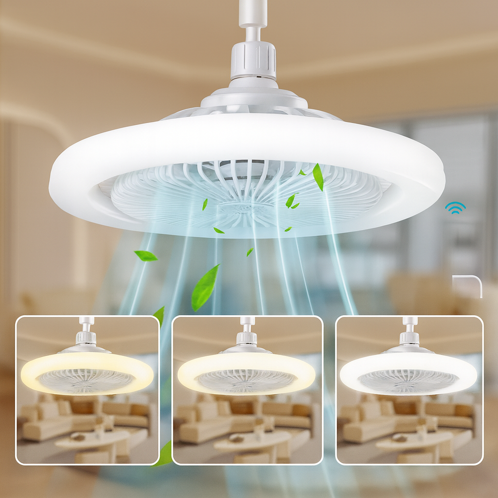 Disfruta de un ambiente fresco e iluminado sin tener que instalar nada más. Este innovador foco ventilador combina luz LED ajustable con potente ventilación silenciosa, todo controlado desde tu control remoto.